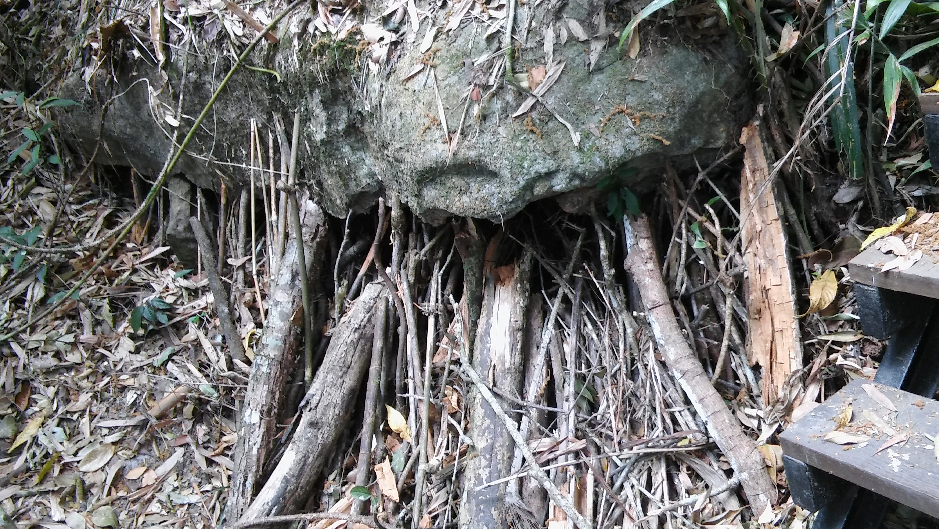 He insisted he did not believe it, but given the collection of kindling under this boulder, many people do.